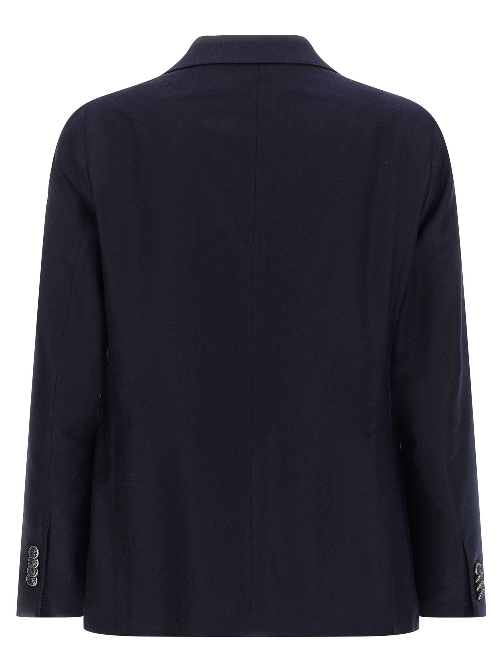 ‘Montecarlo’ single-breasted silk blazer with button closure, pockets, unlined, peak lapels, removable brooch, long sleeves, back vents.