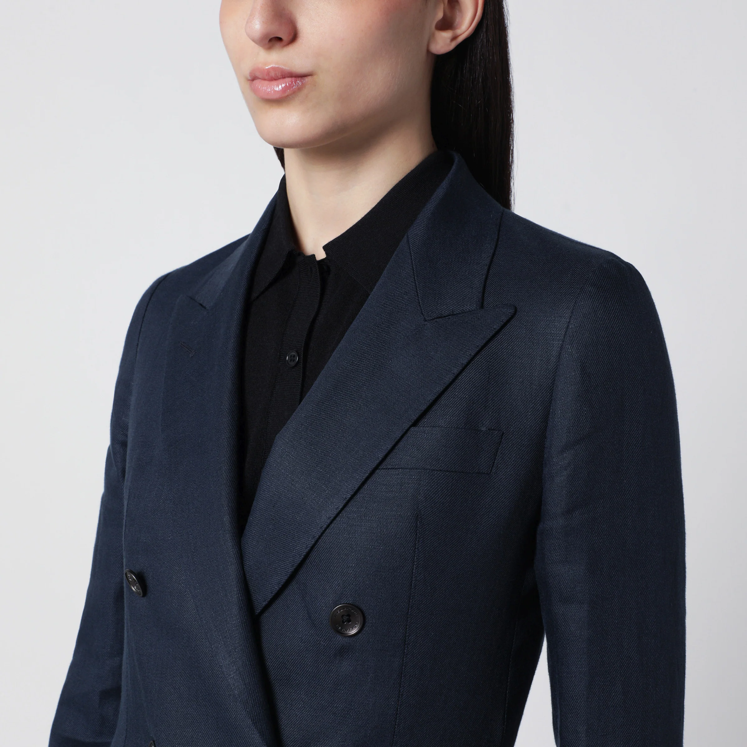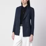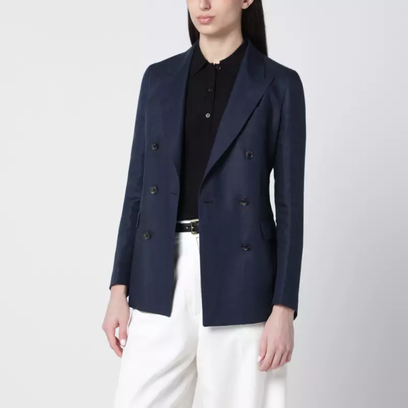 Tagliatore Navy blue double-breasted linen jacket