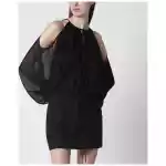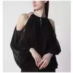 The Andamane semi sheer black blouse Long sleeves with shoulder openings Elastic cuffs Crewneck Front tie fastenings. Size and Fit – Model wears size 40 IT Model measurements: Height: 181 cm Chest: 81 cm Waist: 62 cm Hips: 89 cm