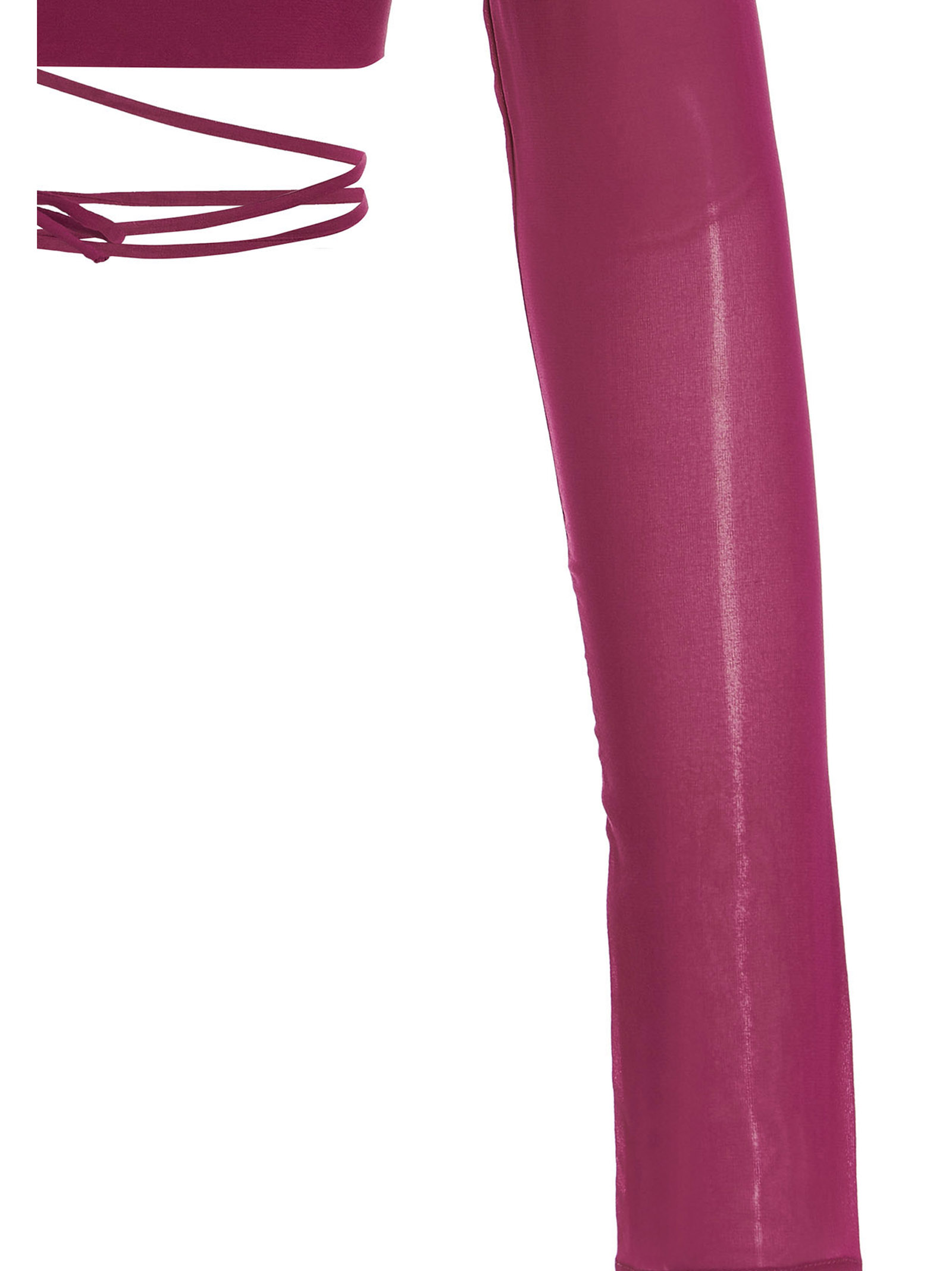 Silk georgette cropped top with bare back, crewneck, long sleeves and a lacing.