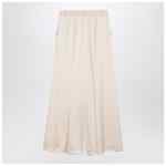 Ivory trouser skirt by The Andamane, featuring waistband loops, two side welt pockets, front pleats and front zip and hook fastening.
