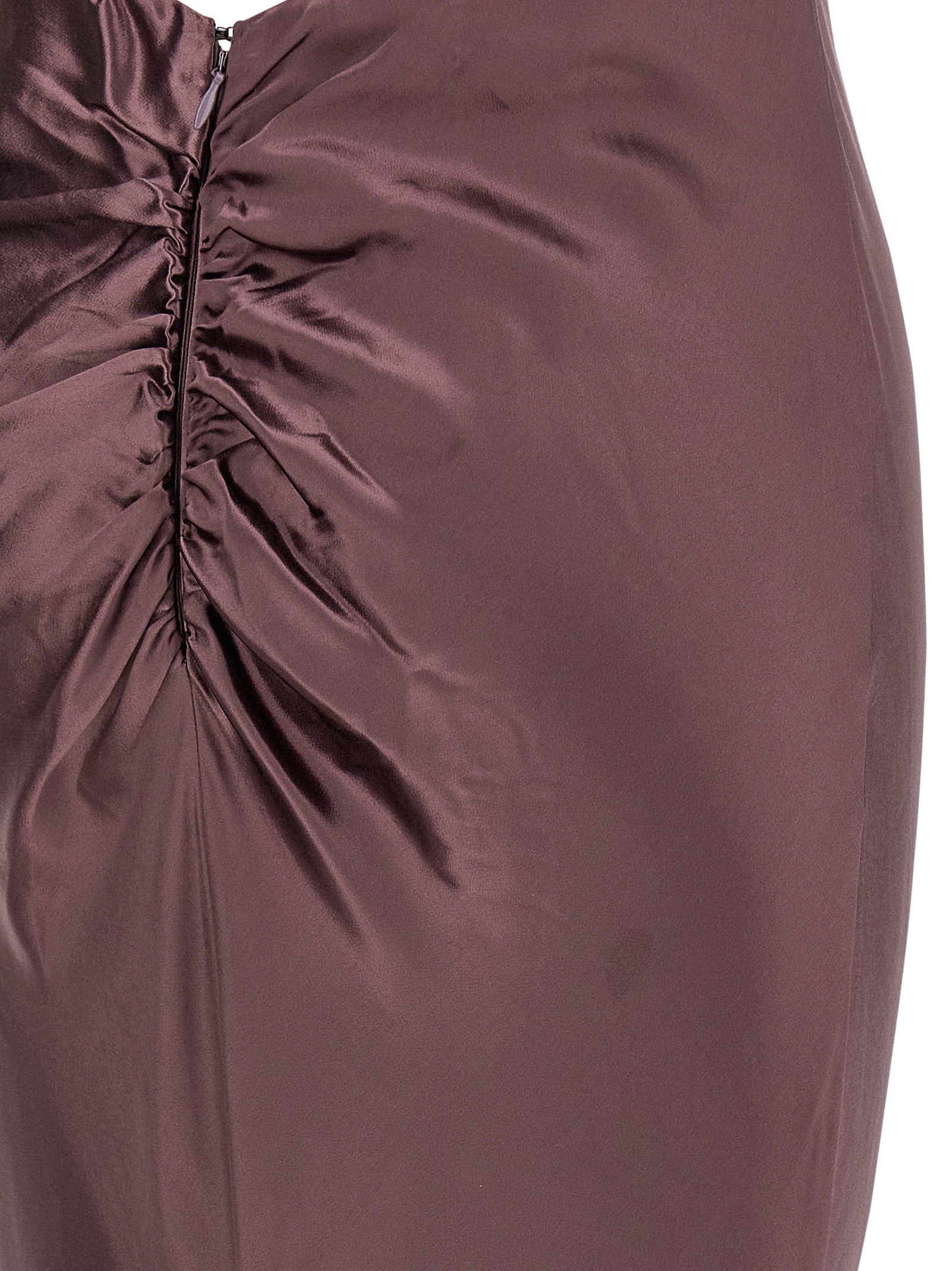 Long ‘Ninfea’ dress in liquid satin, square neckline at the front, thin straps, sleeveless, mermaid skirt with light train, deep round neckline at the back with curl.
