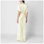 Vanilla interlock jersey long crew-neck dress by The Andamane, featuring short sleeves, back zip closure, and gathered detailing on the front and back.