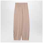 Wide trousers from The Andamane satin greige, featuring a high waist with belt loops, two side welt pockets, front pleats and a front zip and hook fastening.