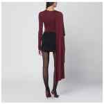 Round neck body by The Andamane in suede effect jersey colour red black, characterized by a fitted fit, long sleeves, draped design, buttons on the crotch, and a long side cape.