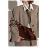 chocolate browntwo-way zip fasteningtwo rolled top handlesinternal slip pocketmetal feet La Passeggiata leather shoulder bag