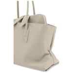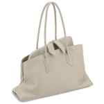 beige top zip fastening two flat shoulder straps partitioned compartment metal feet La Passeggiata leather shoulder bag