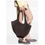 dark brown, calf suede, shoulder straps, zip fastening, internal slip pocket, silver-tone hardware. La Scoop medium leather shoulder bag