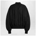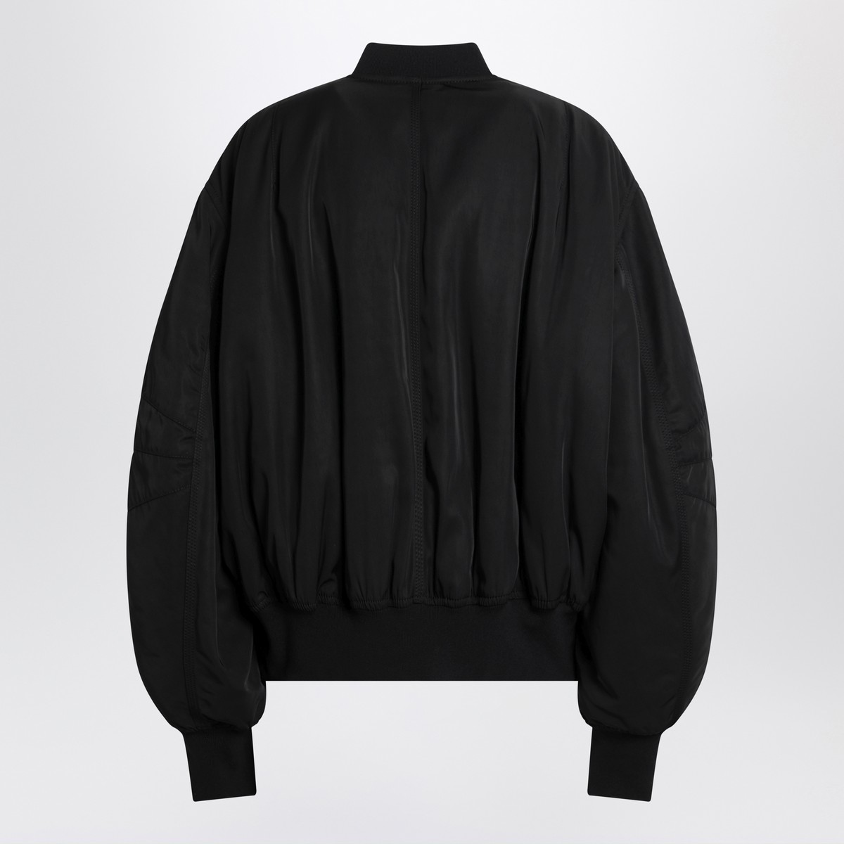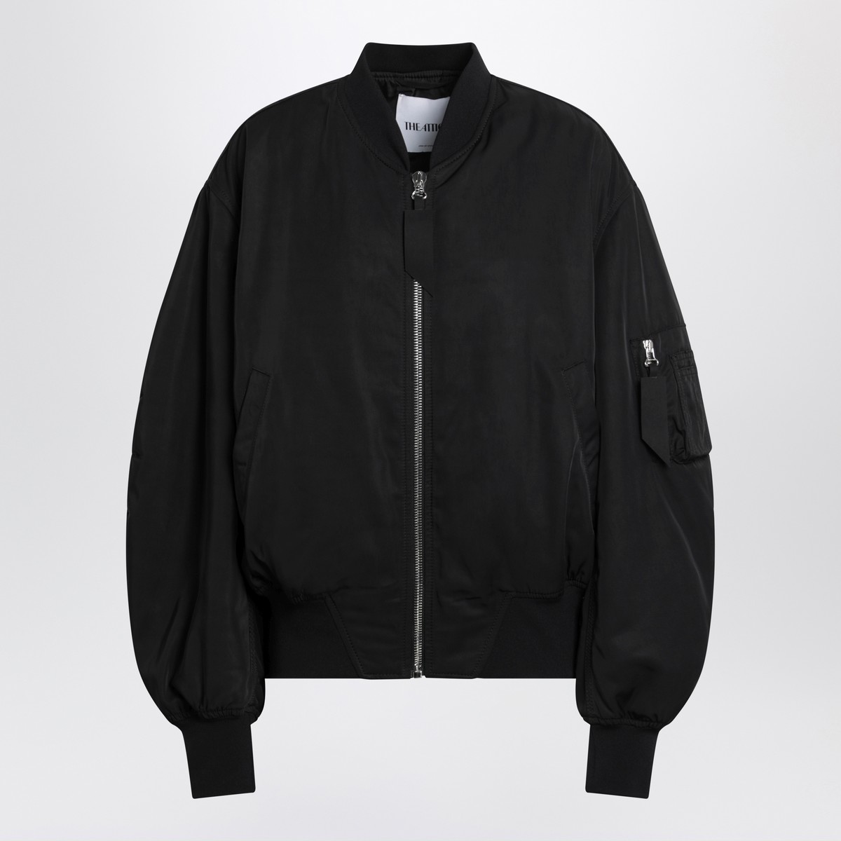 Black bomber jacket by The Attico, featuring exposed front zip, ribbed knit trims, long sleeves—one with zip pocket—and two side pockets.
