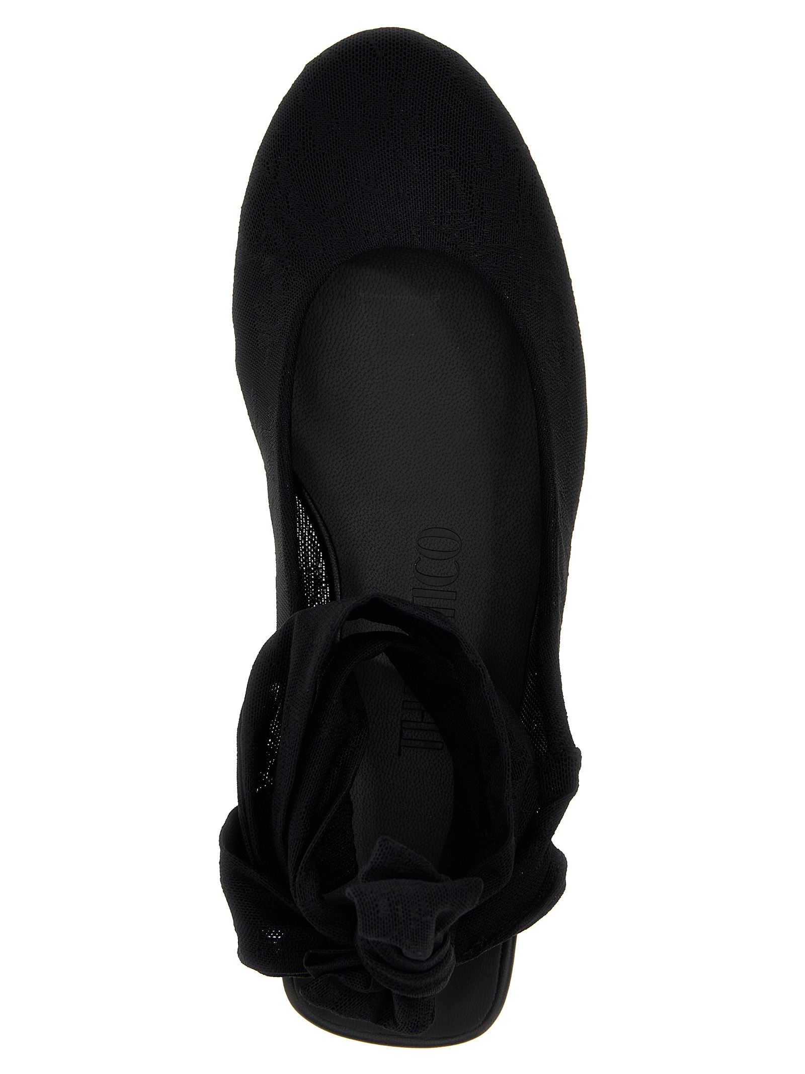 ‘Cloe’ fabric ballet flats with ankle bow, leather sole.