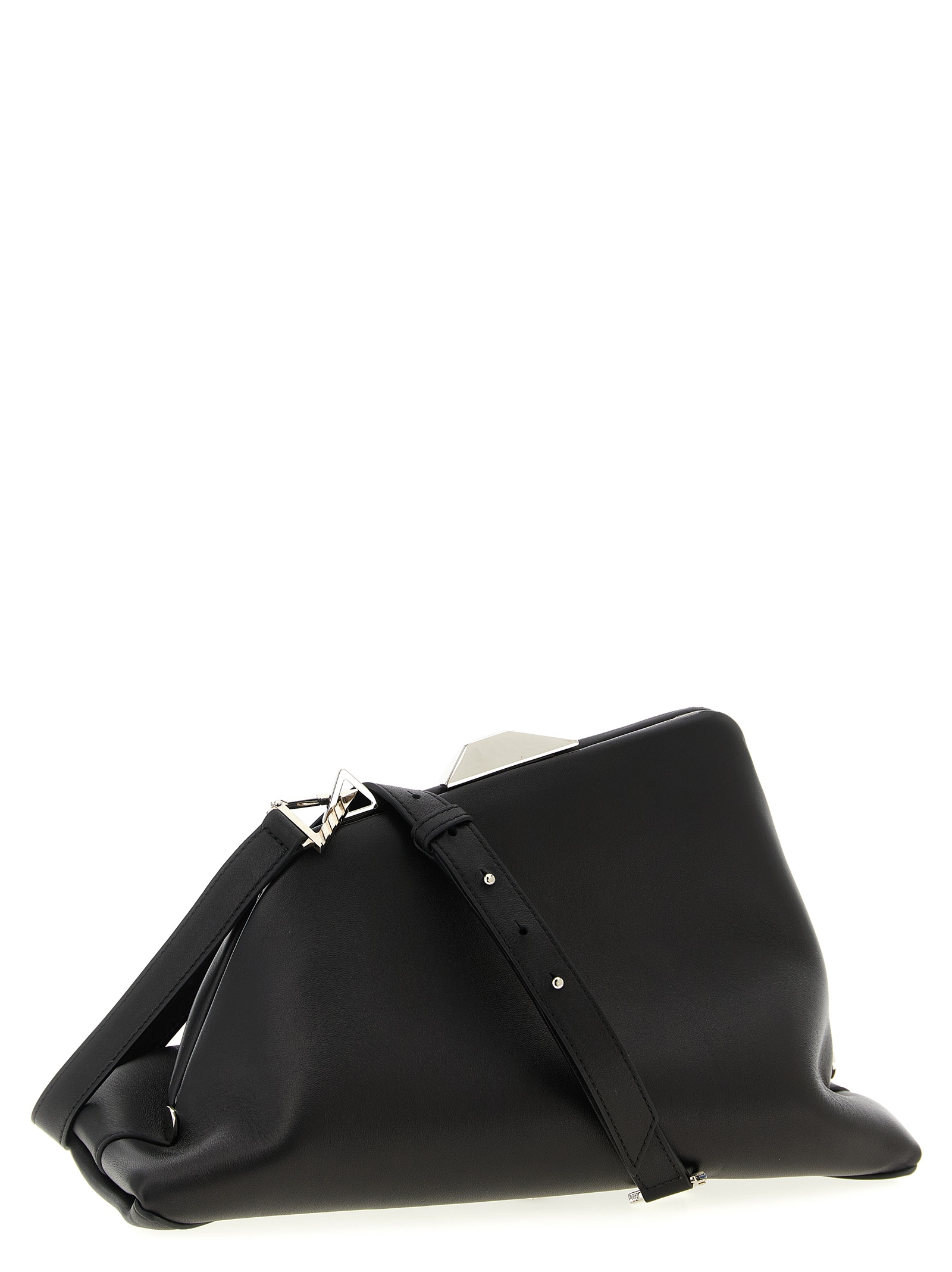 ‘Day Off’ leather shoulder bag with snap closure, adjustable and removable leather shoulder strap.