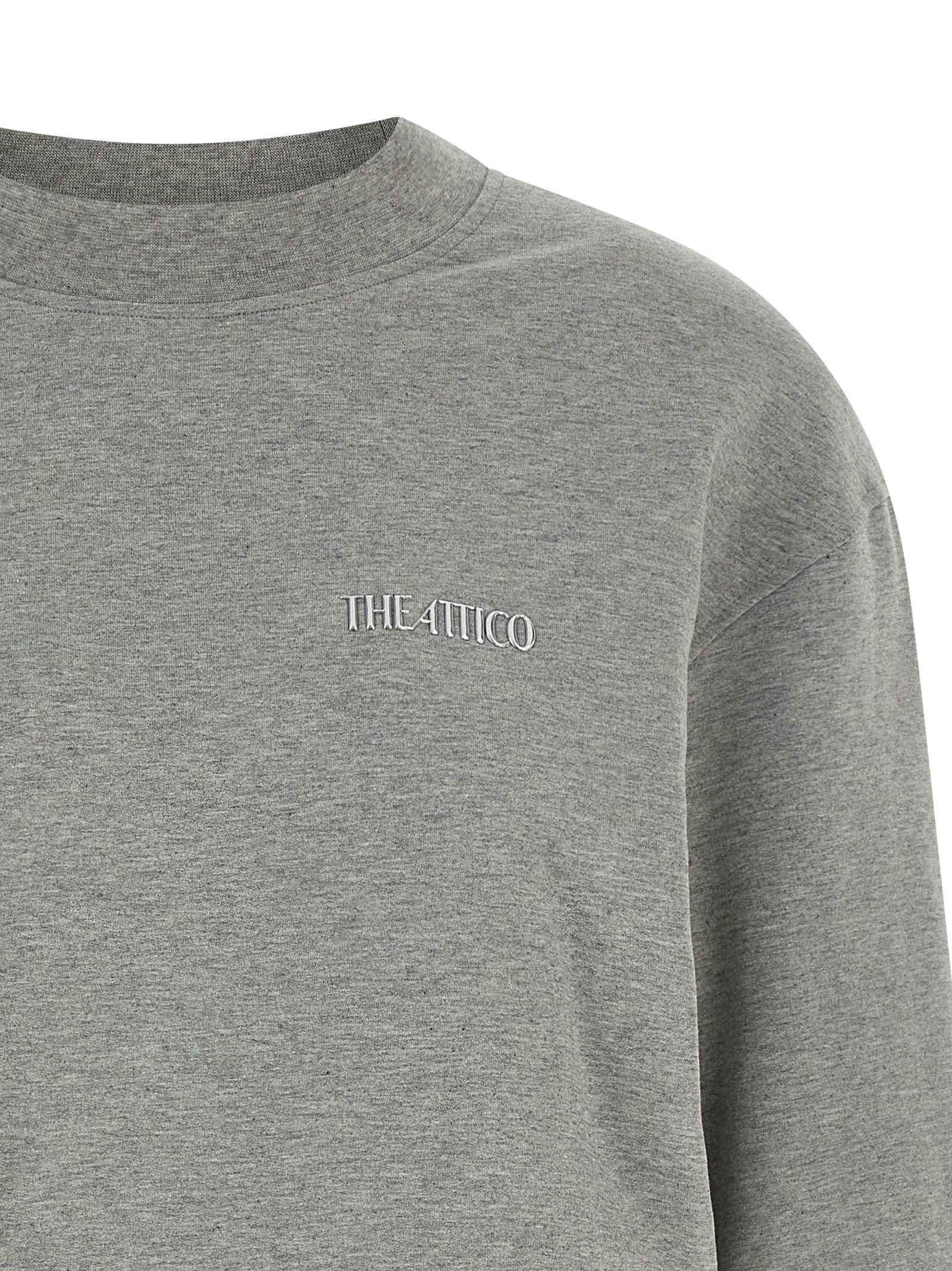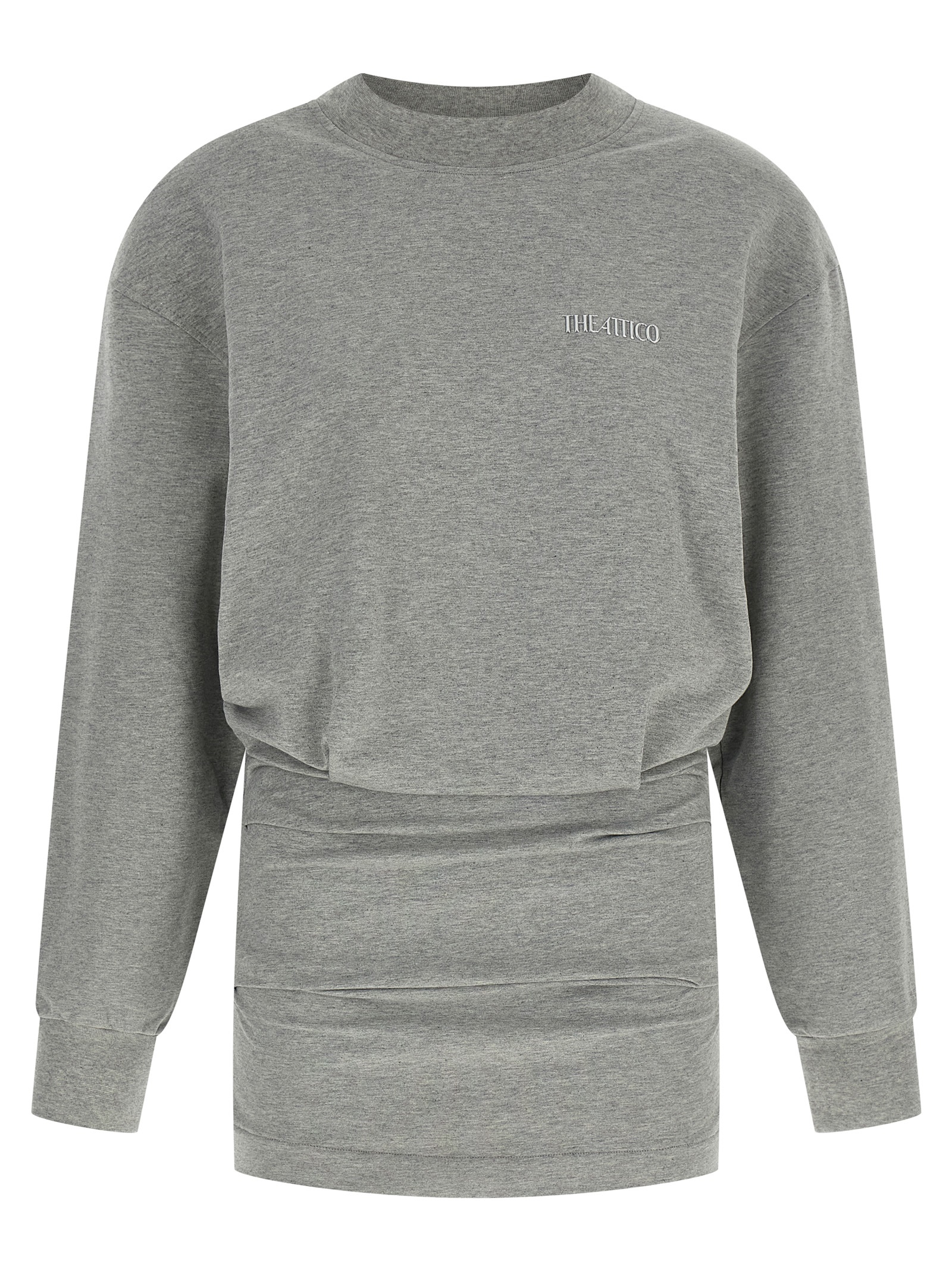 Brushed cotton dress, oversized sweatshirt and draped mini skirt, tone-on-tone metal logo on the front, crew neck, long sleeves with cuffs.