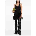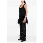 black cotton feather trim sleeveless round neck Feathered mini dress