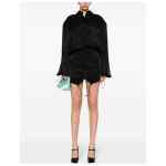 black satin weave all-over jacquard-logo pattern logo-engraved buttons box-pleat detail to the rear straight-point collar drop shoulder long sleeves drawstring cuffs thigh-length front button fastening drawstring hem unlined Logo mini dress