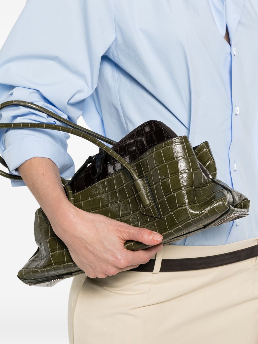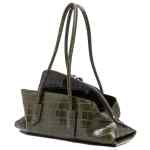 green crocodile effect top handles zip fastening La Passeggiata small handbag.