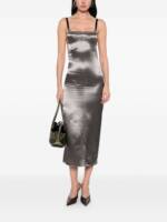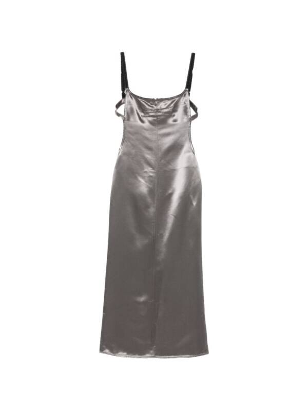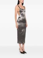 grey open back midi-length tonal stitching rear zip fastening Satin midi dress.