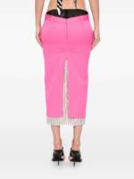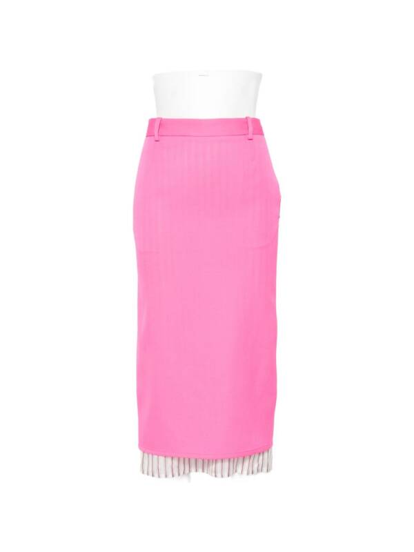 pink striped hem belt loops opening at back Wool midi skirt.