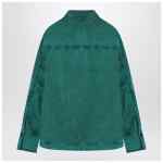 The Attico green cotton shirt, featuring logo embroidery on the chest, classic collar, front closure with logo buttons, shaped slit, and long sleeves with buttoned cuffs.