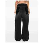 black cotton denim distressed effect layered waist logo patch to the rear embroidered logo to the rear logo-debossed buttons wide leg mid-rise concealed fly and button fastening belt loops classic five pockets straight hem Wide-leg denim jeans