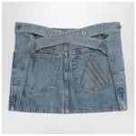Light blue cotton denim mini skirt by The Attico, featuring five classic pockets with logo stitching, crossover back belt to tie at the waist, belt loops, and front closure.