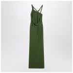 Long dress by The Attico in green rayon blend, featuring adjustable crossed straps at the back, high front slit, and asymmetric neckline.