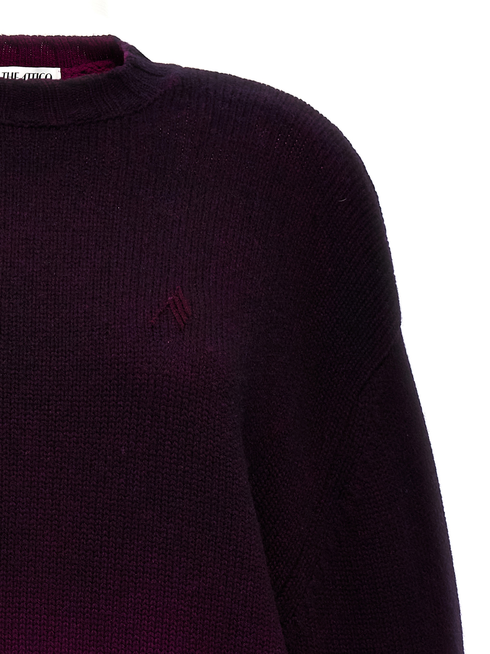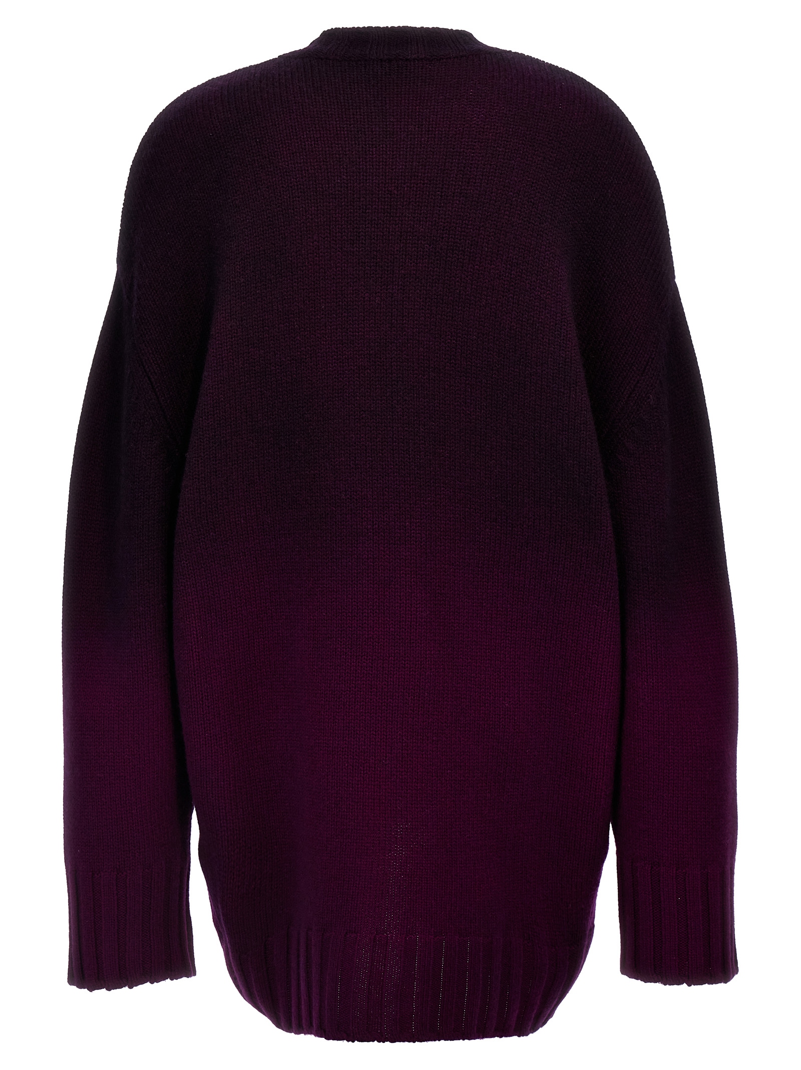 Oversized wool and cashmere blend knit dress with front logo embroidery, crew neck, long sleeves, curved hem.