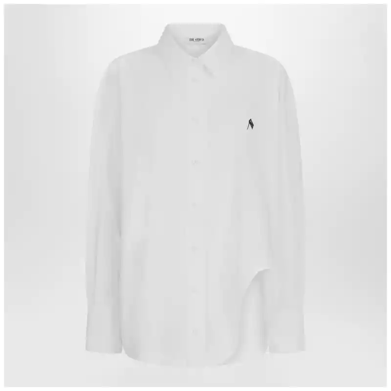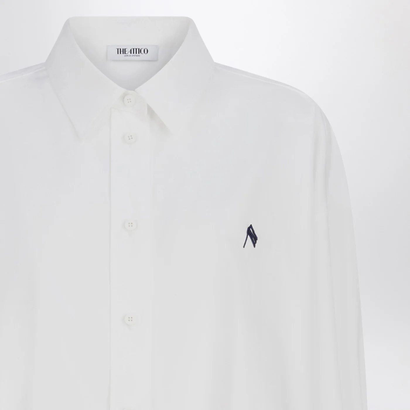 Oversized shirt by The Attico in white cotton Contrasting logo embroidery on the chest Classic collar Front button closure Shaped slit Long sleeves Dropped shoulders Buttoned cuffs. Size and Fit – Model wears size 40 IT Model measurements: Height: 179 cm Chest: 82 cm Waist: 65 cm Hips: 90 cm