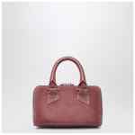 Mini bag by The Attico in pink suede, featuring double-zip closure, top handle, adjustable and removable shoulder strap, contrasting front logo lettering, and silver-tone metal feet.