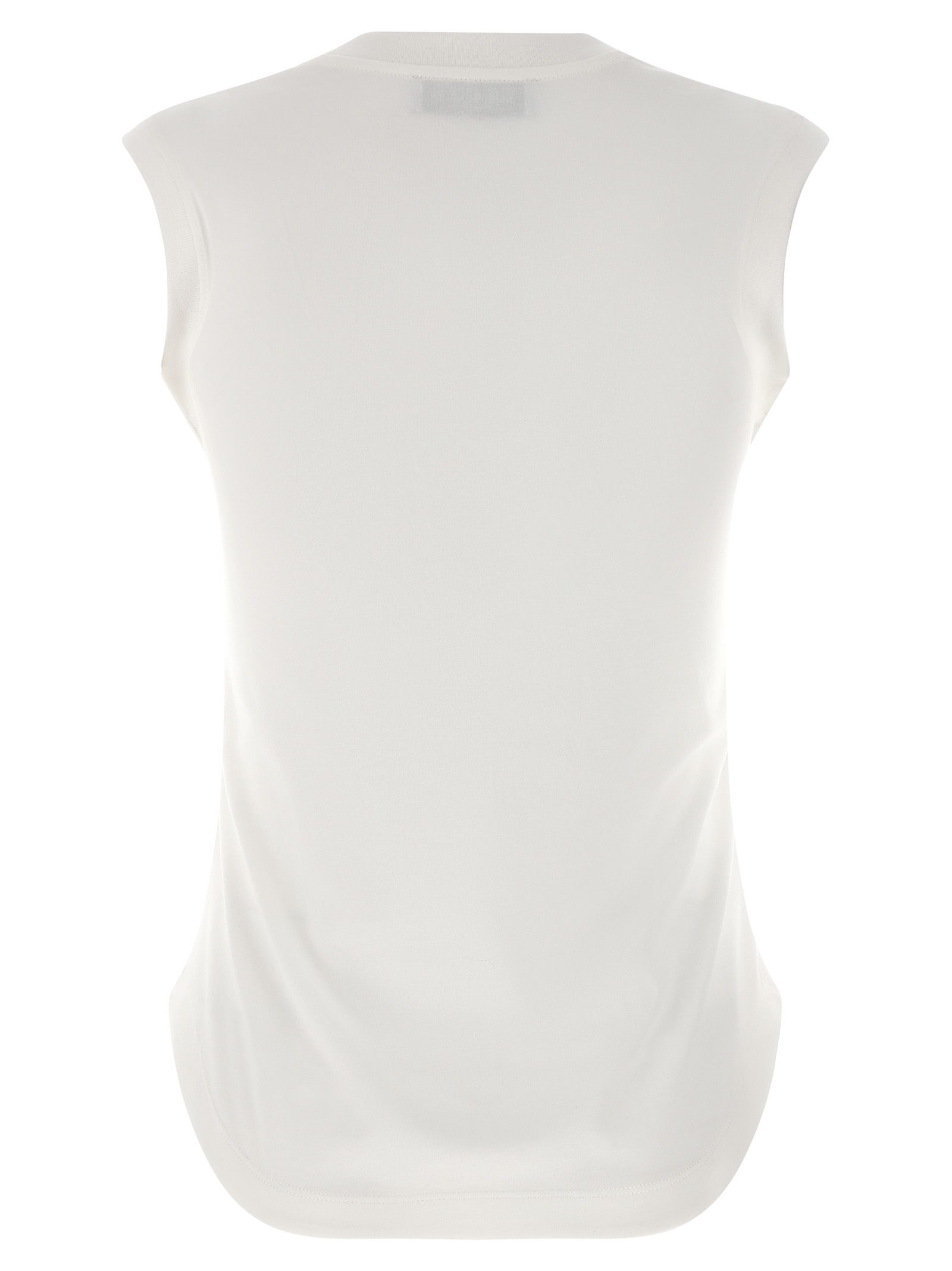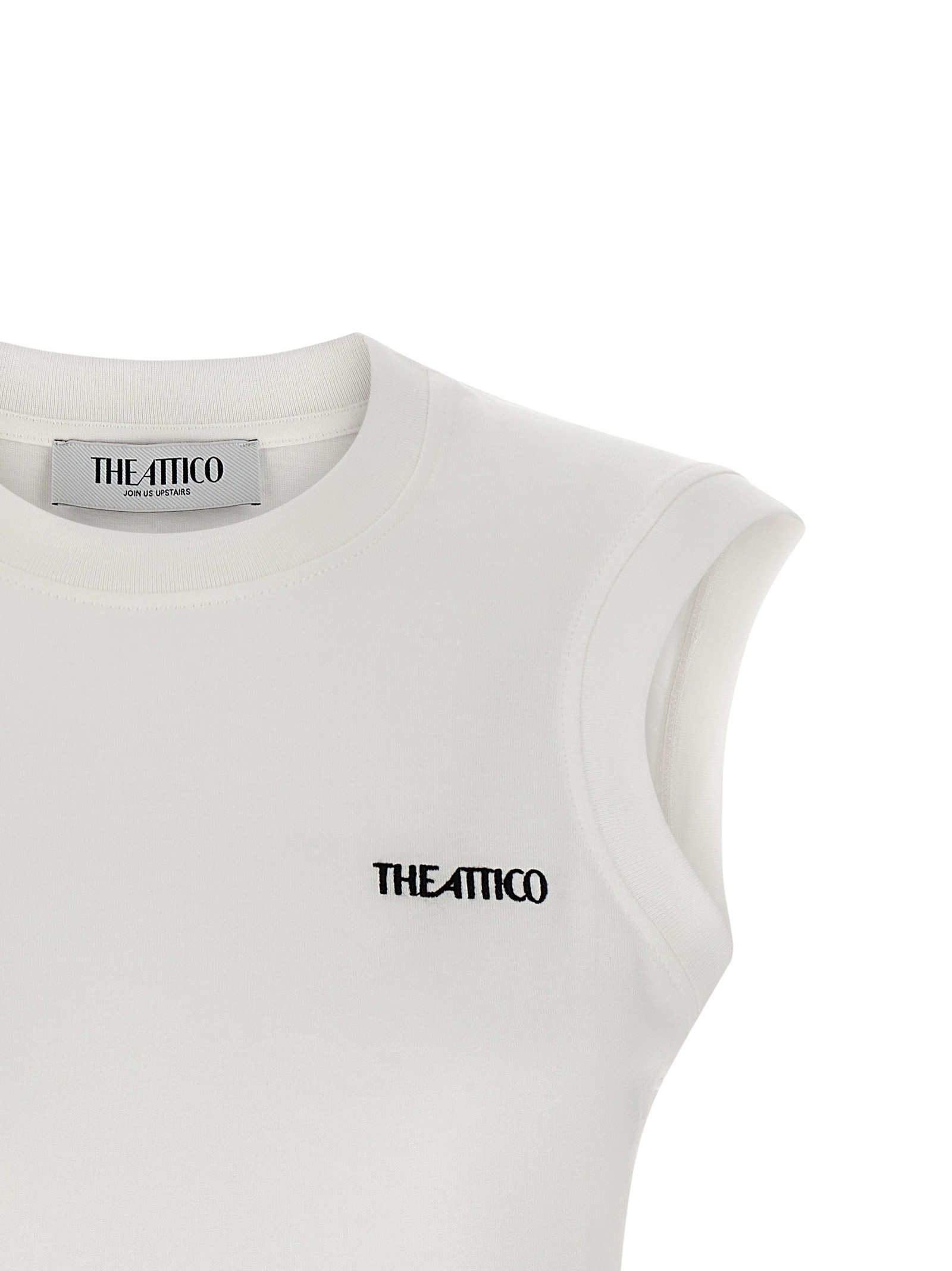 ‘Reese’ cotton top with contrasting front logo embroidery, crew neck, shaped hem.