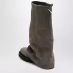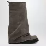 Boot by The Attico in taupe suede Square toe Multilayer monoblock sole Rubber sole Metallic detail on the back.