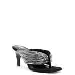 black leather rhinestone embellishment open toe branded leather insole high heel Strass embellished thong sandals