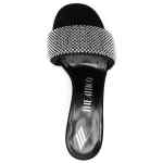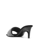 black crystal embellishment round open toe single arched strap open back branded leather insole 60mm mid sculpted heel leather sole slip-on style This piece comes complete with a protective dust bag. Rem strass embellished mules