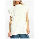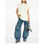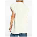 ivory white cotton chunky ribbed knit raised logo detail crew neck cap sleeves straight hem Logo cotton t-shirt