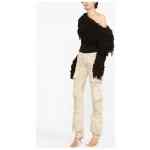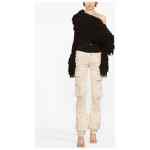 Essie marbled cargo pants from The Attico featuring beige, cotton, marbled pattern, embroidered logo, low-rise, belt loops, zip fly fastening, two side pouch pockets, multiple cargo pockets, two rear patch pockets and slim cut. Essie cargo denim trousers