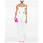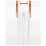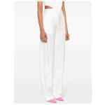 milk white satin weave all-over jacquard logo motif pressed crease belt loops two side inset pockets two rear welt pockets concealed front button, hook and zip fastening Logo trousers