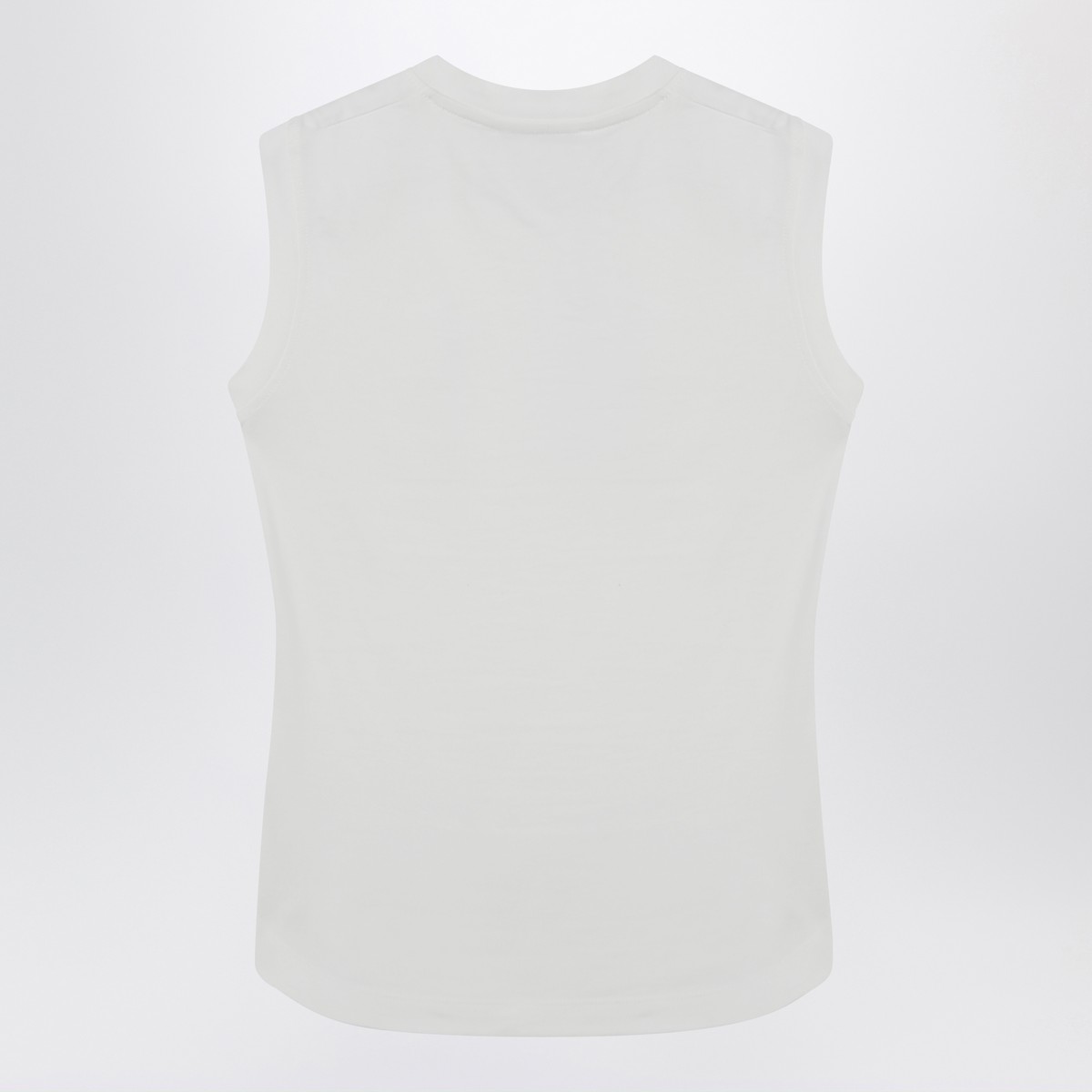 Crew-neck tank top by The Attico in white cotton, featuring contrasting embroidered chest logo lettering and shaped hem.