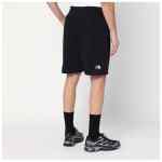 Shorts by The North Face in black cotton blend, featuring an elasticized waistband with drawstring, two side welt pockets, and contrasting logo lettering embroidery on the front and back.