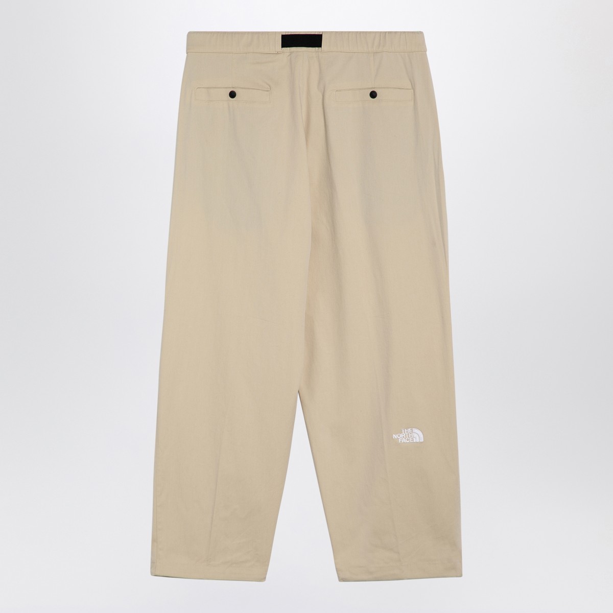 Cream-coloured cotton-blend trousers from The North Face, featuring a waistband, two side welt pockets, two zipped patch pockets on the front, contrasting logo embroidery on the front and back, and two welt pockets on the back with a button.