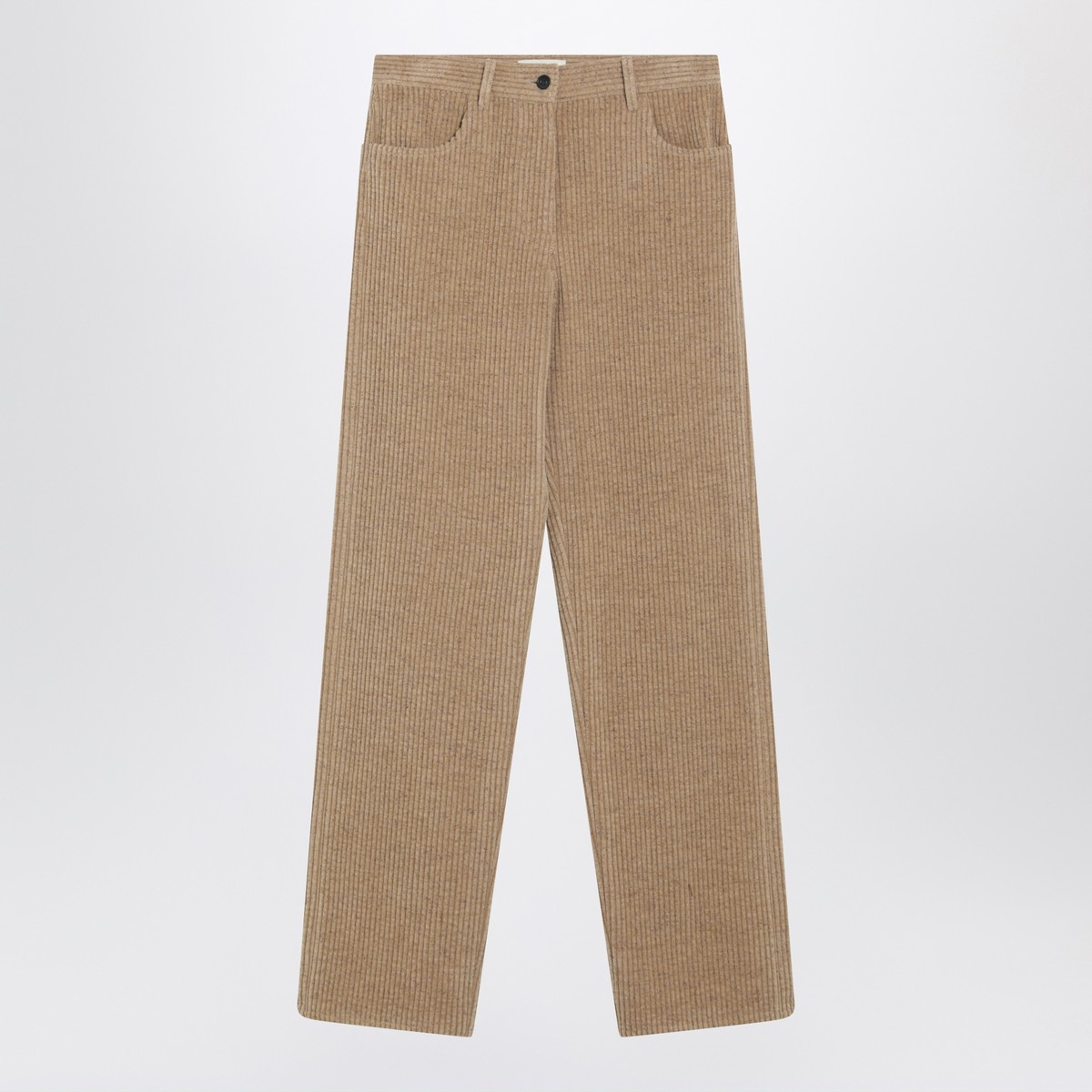 Anise beige corduroy trousers by The Row in cotton and wool blend, featuring front zip and button closure, straight leg, belt loops, and five classic pockets.