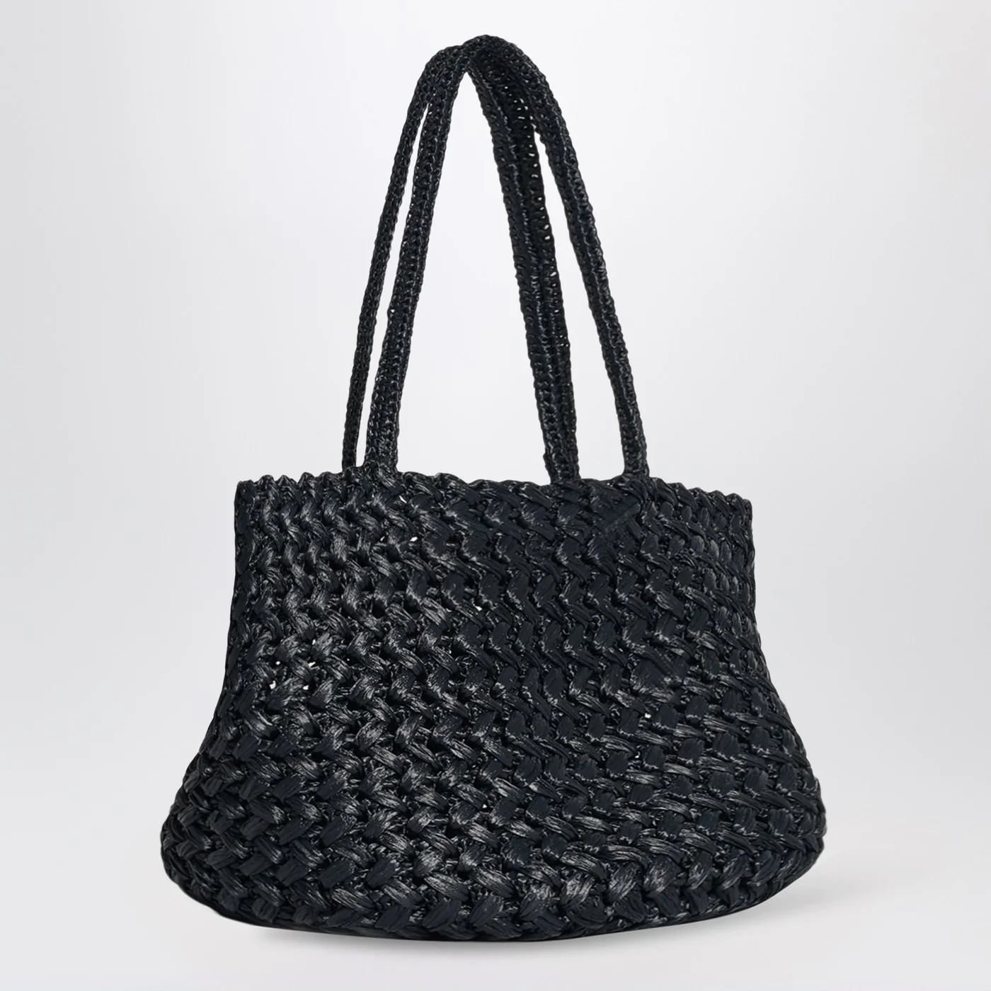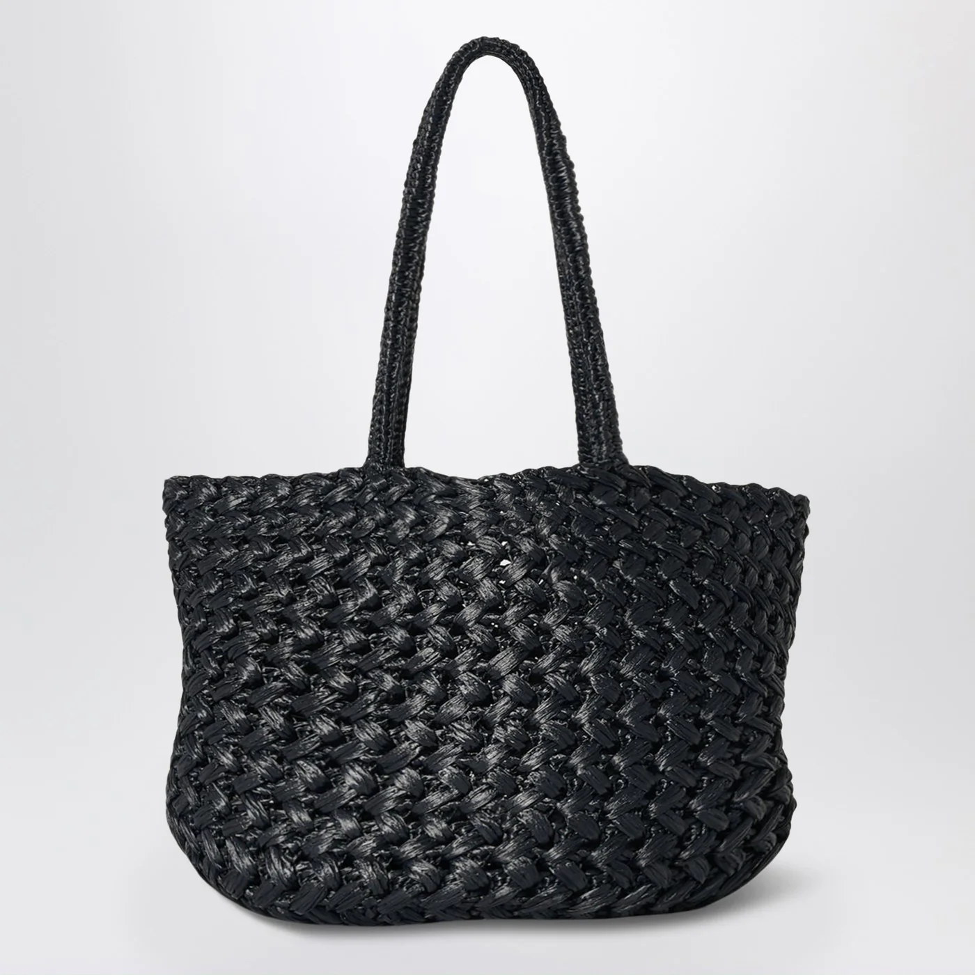 Tote bag by The Row in black woven raffia featuring elongated woven handles open top and slightly rounded base. Size and Fit – Width 58 cm x Height 30 cm x Depth 27 cm Handle drop: 30 cm