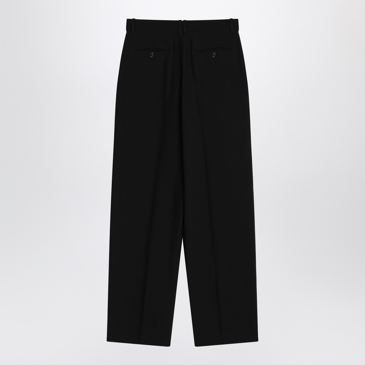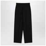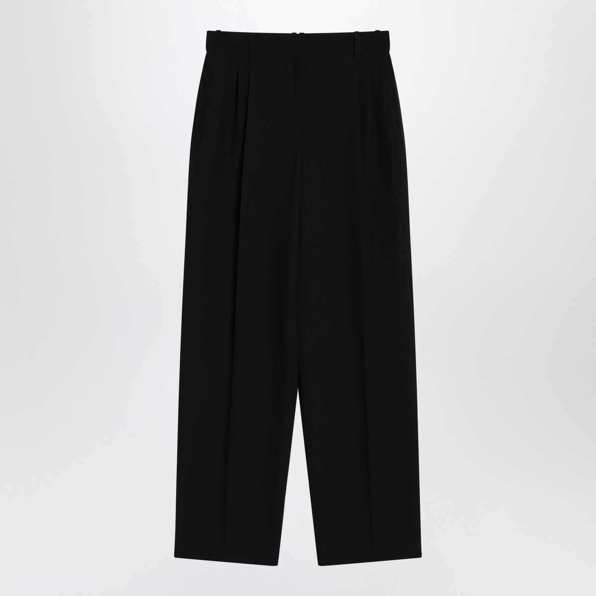 The Row black wool and linen trousers, characterized by a high waist with belt loops, straight and wide leg, double front pleats, front closure with zip and hook, two side welt pockets and two back welt pockets with button.