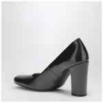 The Row pumps in shiny black leather, featuring a square toe and block heel.