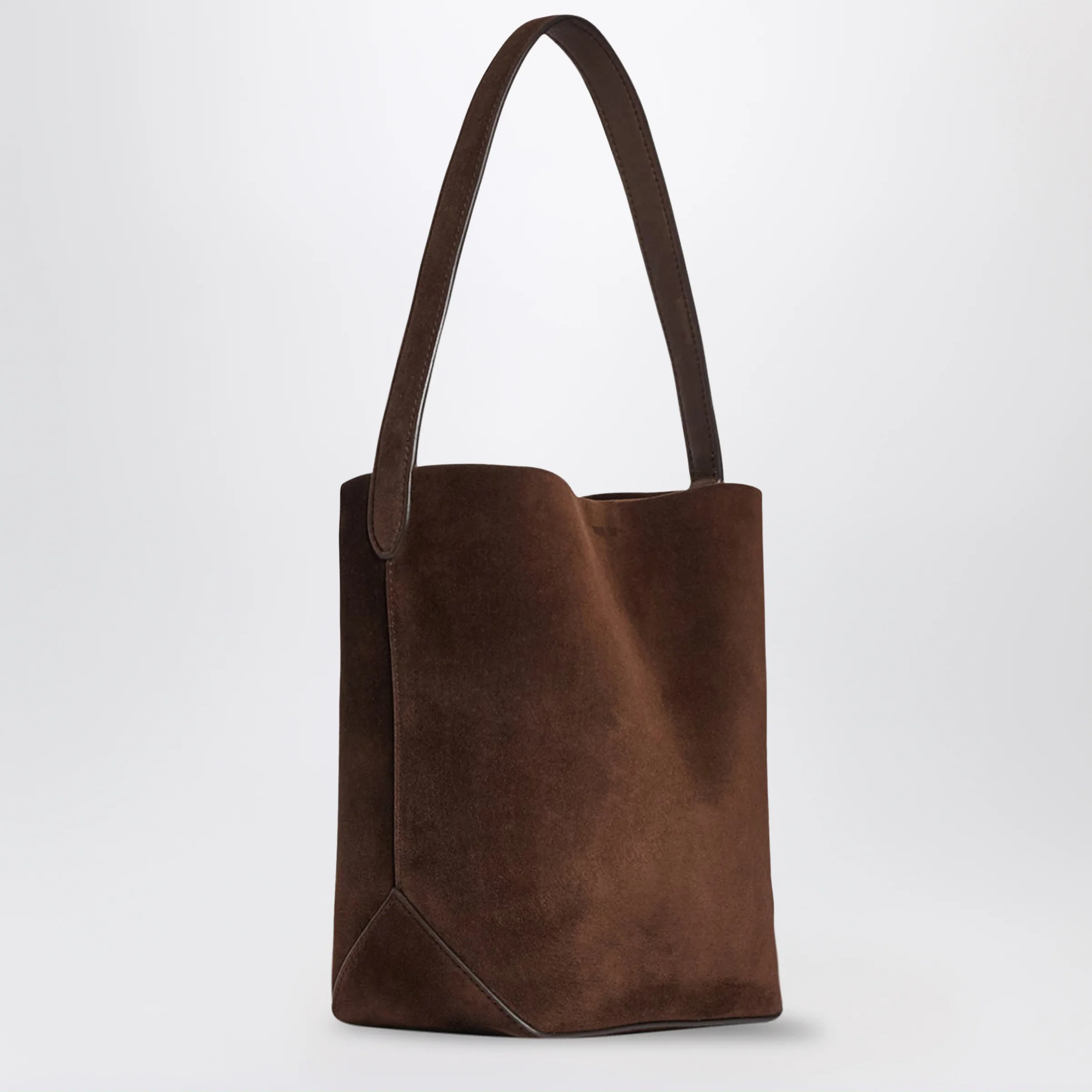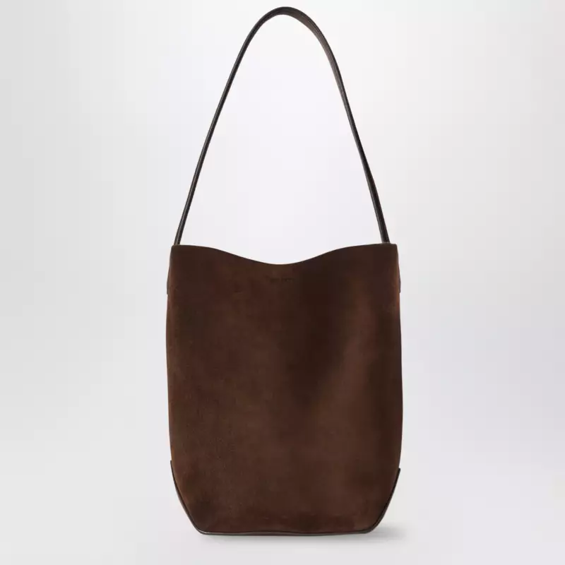 The Row Small Park Tote Edge suede leather tote in brown