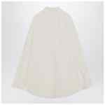 Oversized white cotton poplin shirt by The Row featuring front button closure, long sleeves with buttoned cuffs, a chest patch pocket, and a curved hem.
