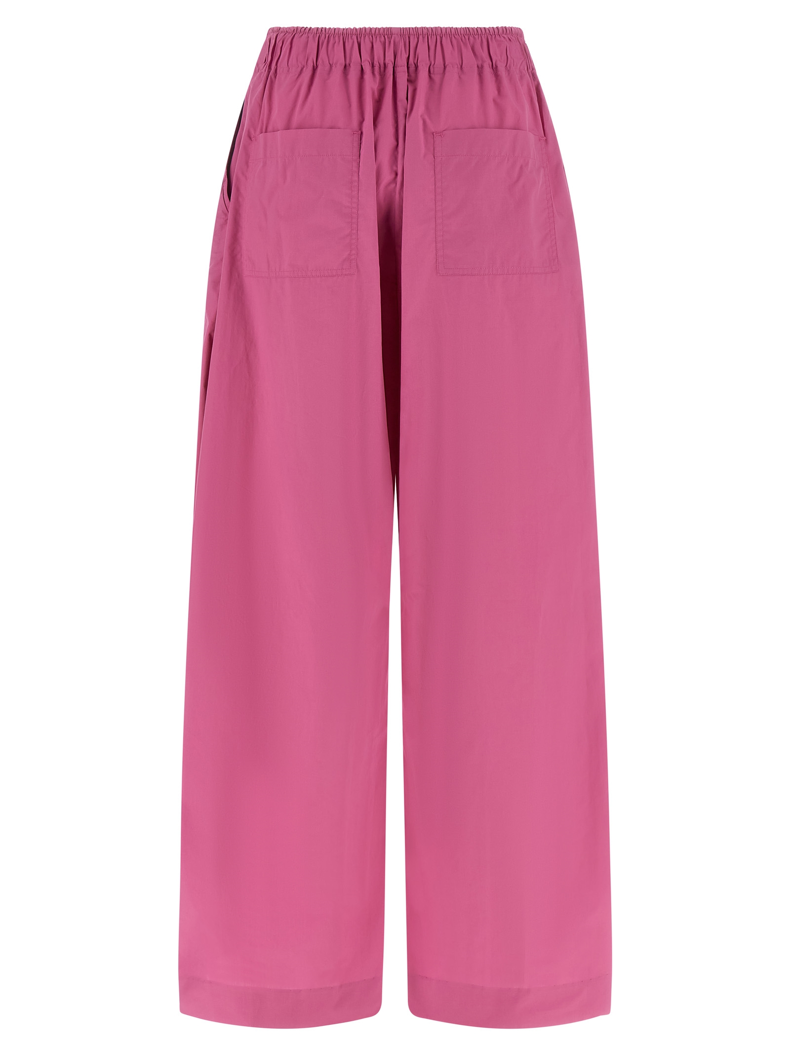 ‘dora’ cotton poplin pants, Wide and straight leg, Elastic waistband, Trompe l’oeil flap, Pockets. Size and Fit – true to size fit