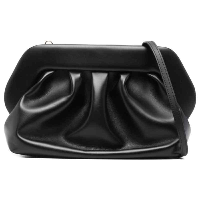 black ruched detailing shoulder strap top handle clasp fastening This piece comes complete with a protective dust bag. Bios vegan leather clutch. Size and Fit – DEPTH: 15.0 Centimetres. HEIGHT: 20.0 Centimetres. WIDTH: 30.0 Centimetres.
