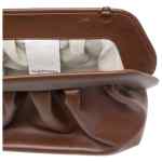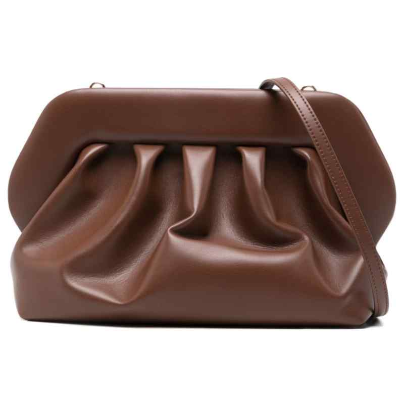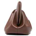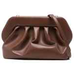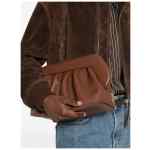brown gathered detail shoulder strap top handle clasp fastening This piece comes complete with a protective dust bag. Bios vegan leather clutch. Size and Fit – DEPTH: 15.0 Centimetres. HEIGHT: 18.0 Centimetres. WIDTH: 32.0 Centimetres.