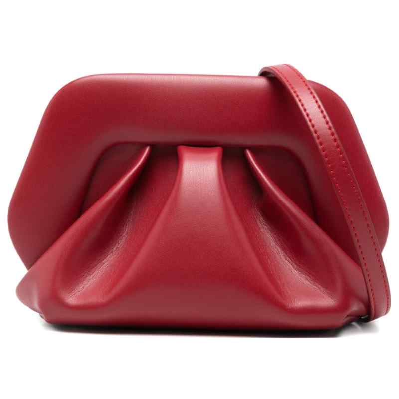 red gathered detail This piece comes complete with a protective dust bag. Bios small vegan leather clutch. Size and Fit – DEPTH: 10.0 Centimetres. HEIGHT: 12.0 Centimetres. WIDTH: 20.0 Centimetres.