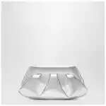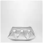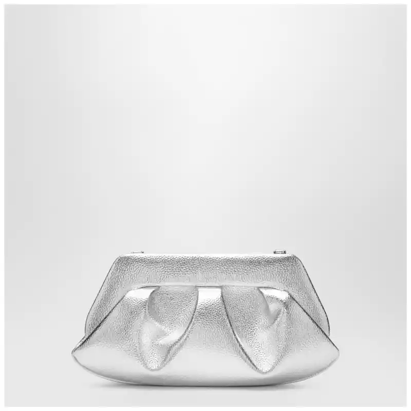 THEMOIR clutch in silver eco leather featuring double magnetic closure removable shoulder strap fabric lining and one internal card pocket.