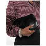 black gathered detail detachable shoulder strap This piece comes complete with a protective dust bag. Bios Baguette vegan leather clutch. Size and Fit – WIDTH 32 cm. HEIGHT 13 cm. DEPTH 8 cm.